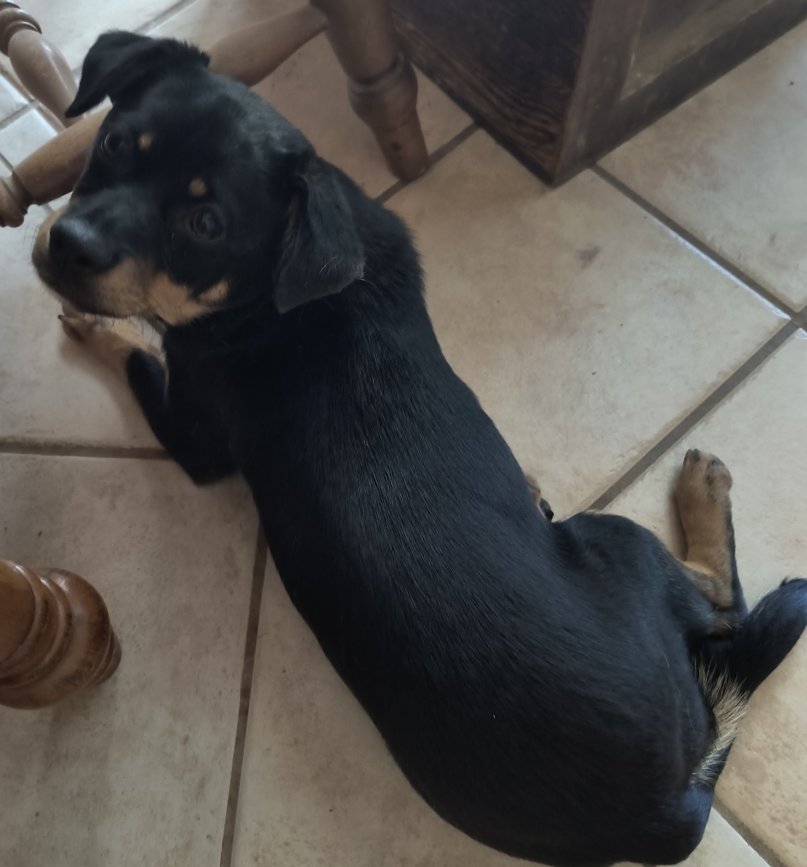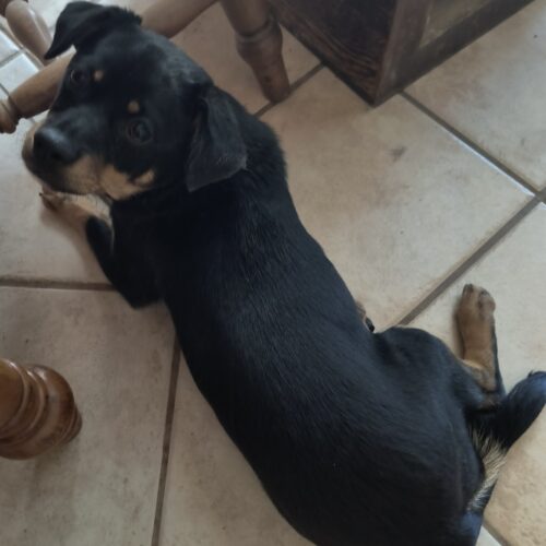 Meet Annie, a gentle soul who loves to snuggle. Annie is a calm, affectionate girl with a heart full of sweetness. She absolutely loves to cuddle and enjoys spending time with her people, whether that means relaxing together or playing with her favorite toys. Plush toys and squeaky toys are some of her favorites, and she also enjoys settling in with a good rawhide chip to chew on. She gets along well with other dogs and enjoys having canine friends to play with. Annie has shown curiosity around cats without aggression, so cats may be fine with a slow and proper introduction, depending on the household. Annie knows how to use a doggy door and does her business outside. At night she sleeps comfortably in her cozy pen, and occasionally she may need a quick nighttime potty break. She has a gentle, easy going personality and truly enjoys being close to the people she cares about. If you're looking for a loving companion who enjoys both playtime and snuggle time, Annie may be the perfect match!