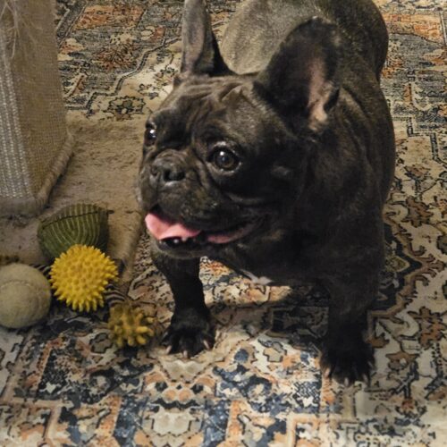 Francesca may be small in size, but she’s big in heart—and personality! This gorgeous French Bulldog is trading her past life for a new chapter filled with love, naps, and ear scratches. Affectionately nicknamed “Chunk-a-Monk,” Francesca is learning how wonderful it is to just be a dog. She’s discovering toys, learning to trust, and figuring out that being loved feels pretty great. She’s a little shy at first, but once she knows you’re safe, she’ll be your loyal shadow. Francesca would do best in a calm home where she can continue blossoming into the playful, happy girl she was meant to be.